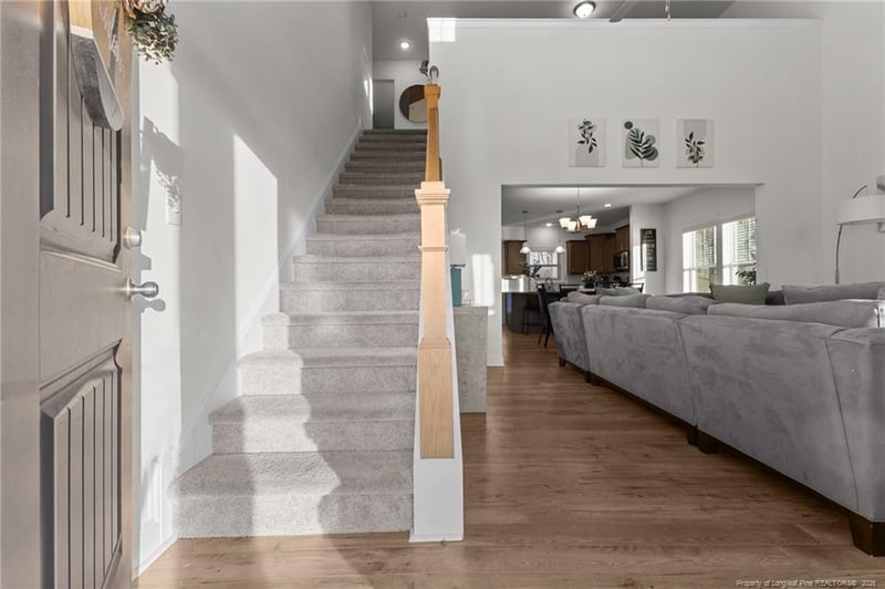 Listing details for 1812 Stackhouse Dr, Fayetteville, NC 28314 : Welcome to 1812 Stackhouse Drive in Fayetteville, NC, a well-maintained, move-in-ready home built in 2023 that blends modern design with everyday functionality. This 4-bedroom, 2.5-bath residence features engineered hardwood floors and an upgraded staircase, creating a polished and welcoming feel from the moment you enter. The primary suite is conveniently located on the main floor and includes a spacious en-suite bathroom with a double vanity, offering comfort and privacy. The heart of the home is the gourmet kitchen, complete with upgraded appliances and a double oven, ideal for cooking, hosting, and entertaining. The living area is enhanced by an electric fireplace, adding warmth and style to the space. Upstairs, you'll find the three additional bedrooms, a full bathroom, and a versatile loft area that can be used as a second living space, playroom, or flex room. Outside, enjoy a fully fenced backyard with sod in both the front and back yards, offering a clean, green outdoor space ready for relaxation or entertaining. With thoughtful upgrades throughout and excellent upkeep, this nearly new home offers modern living at its best in a desirable Fayetteville location.