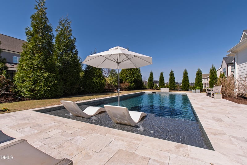 Listing details for 1820 Center Ridge Dr, Apex, NC 27502 : CUSTOM HOME , Stillwater Subdivision Welcome to 1820 Center Ridge Drive, a beautifully maintained home in one of Apex's most desirable communities. This property blends modern comfort with timeless style minutes from Wake County Schools, parks, shopping and vibrant downtown Apex. Step inside this bright, open floor plan designed for everyday living with 2,550 sq ft on main level which includes 2 of the 4 bedrooms in home. Total Sq ft. is 3,685. Home has 4 bedrooms , 4.5 bathrooms, and upstairs bonus room can be a 5th bedroom. Gourmet Kitchen with large center island and kitchen eating area opens to a family room with a coffered ceiling, custom beams in dining room and large sliding door system leading out into an expansive screened in porch with gas fireplace. Custom built home with many upgrades by local Raleigh builder Legacy Homes. Lovely trim in most rooms must see to appreciate this well designed home. Large rooms make this home plan desirable with main level primary bedroom and guest room living on one level with 3 large rooms upstairs ideal for families that appreciate privacy and thoughtful living home design. 1st floor study provides that work from home space and a flat backyard offers great space with limestone patio and an in ground Gunite pool for summer enjoyment. Hardwood floors throughout all rooms on main level and 3 upstairs rooms are carpeted. Designer upgraded lighting throughout makes this home stand out as an additional custom feel with 2 Gas fireplaces and extra deep 3 Car Garage to help give extra space, plus over 1000 sq. feet of unfinished space on 2nd level for any new or future expansion plans that may desired. Mature landscaping will provide privacy and enhances the curb appeal of this special home located in Stillwater Subdivision in Apex, NC.