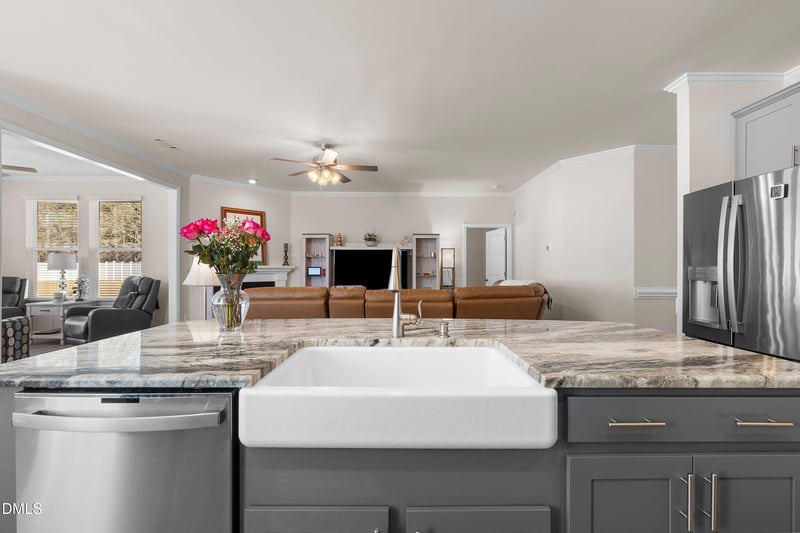 Listing details for 183 Piston Point, Clayton, NC 27520 : Welcome to easy, comfortable living in Highgate--where quiet cul-de-sac charm meets the convenience of being just minutes from grocery stores, dining, and everything downtown Clayton offers, with quick access to Raleigh for effortless commuting or visits to the city. Thoughtfully designed for downsizers and relocating retirees who want to simplify without sacrificing space, this 3-bedroom, 2-bath ranch offers nearly 2,000 square feet of flowing, one-level living on a private 0.38-acre homesite partially framed by a tree line for a peaceful backyard setting. The open layout is ideal for both everyday living and hosting, with seamless connection between the spacious living room with gas-log fireplace, gourmet kitchen featuring granite countertops, light gray cabinetry, contrasting island, double wall ovens, electric cooktop, farmhouse sink, and generous pantry, and a heated-and-cooled sunroom that expands your gathering space year-round. Step outside to covered and uncovered patio areas overlooking an immaculately maintained, pool-ready yard that feels wonderfully defined thanks to neighboring fencing while remaining open and airy. The oversized primary suite provides a relaxing retreat with trey ceiling, soaking tub, walk-in shower, dual sinks, water closet, and large walk-in closet, while practical features like LVP flooring throughout main areas, a spacious laundry room with mud bench, and an oversized two-car garage with storage/workshop bump-out support low-maintenance, functional living. Enjoy walkable access to community amenities including a clubhouse, indoor pool, sidewalks, and trails--all within a welcoming residential setting designed for connection, comfort, and a slower pace without feeling far from it all.