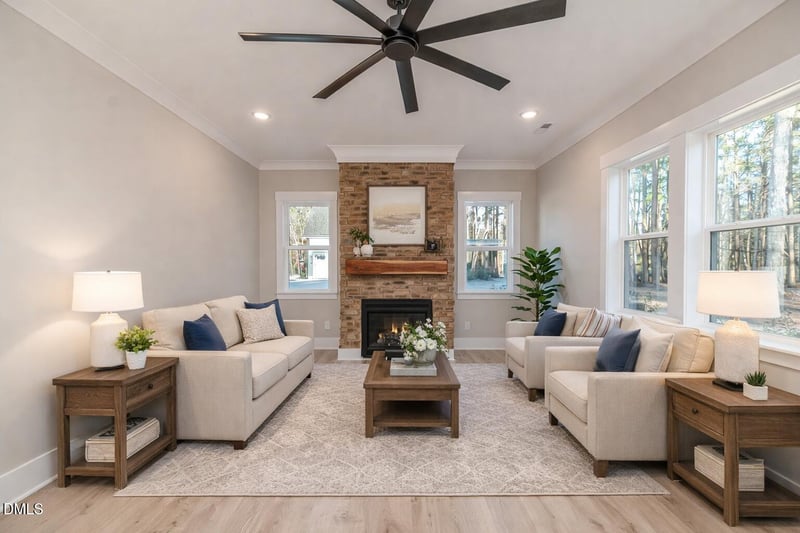 The Oak Floor Plan 3 Story! The open concept design creates an inviting atmosphere, perfect for relaxing and entertaining. Enter the foyer to 10ft ceilings, custom crown molding and LVP flooring that runs throughout the first floor. Formal dining has coffered ceiling. 1st floor study and a full bath. Spacious family room w/ gas fireplace. Kitchen is accented by quartz counters and large island with a waterfall feature for that added elegance. Tile backsplash highlights the lovely stained hickory cabinets. Walk-in pantry and butler's pantry make this kitchen so functional. Follow the oak staircase and check out the big master bedroom w/ elegant spa bath featuring ceramic tile floor, walk-in tile shower, free-standing tub, and double vanity. There are 3 additional bedrooms, a loft and a full bathroom on the 2nd floor. The 3rd floor has a great bonus room and a full bath The attached two-car garage has an EV charging station. Easy commute to Raleigh & Ft Bragg. UP TO $25,000 CONCESSION FROM SELLER FOR BUYER TO USE HOWEVER THEY CHOOSE...buy down rate or cover closing costs! Easy commute to Raleigh & Ft Bragg
