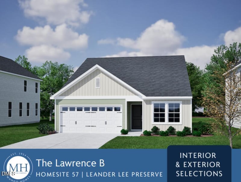 Listing details for 188 Thomas Trl, Lillington, NC 27546 : This Lawrence plan sits on a little over a half-acre lot with tree lines in the back for privacy. Flat low maintenance yard in the hidden gem community, Leander Lee preserve. It is a one-story, three-bedroom, two-bathroom home with an open kitchen, great room, and eat-in. The kitchen features an island overlooking the great room. The primary suite is located at the back of the home and includes a water closet in the bathroom and spacious walk-in closet with laundry passthrough. Two secondary bedrooms and a shared bathroom are located at the front of the house. A laundry room and coat closet are located next to the garage entry.