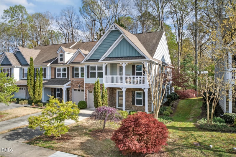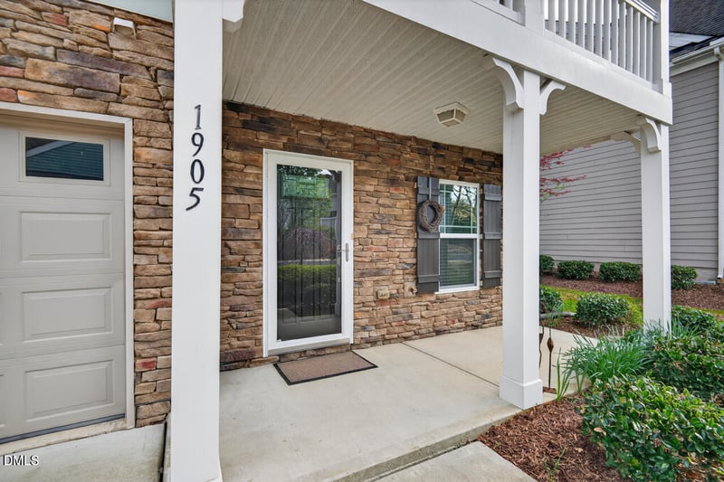 Listing details for 1905 Bartlett Cir, Hillsborough, NC 27278 : Inviting end unit townhome in popular Braddock Park with sought-after main level primary bedroom. Dramatic two-story living room has additional upper windows and gas-log fireplace. The primary bedroom has trey ceilings, walk-in closet and ample vanity space. Upstairs you'll find a loft area, three additional bedrooms with good closet space, two linen closets and bathroom. Sweet front porch with stone accent wall, rocking chair second floor balcony and back patio with planter wall provide great outdoor spaces. Woods behind offer privacy and views. Braddock Park is a friendly, goldilocks size (not to big, not to small) community with neighborhood pool, sidewalks, picnic grill area, and easy access to shopping, dining and the charm of Hillsborough's historic downtown.