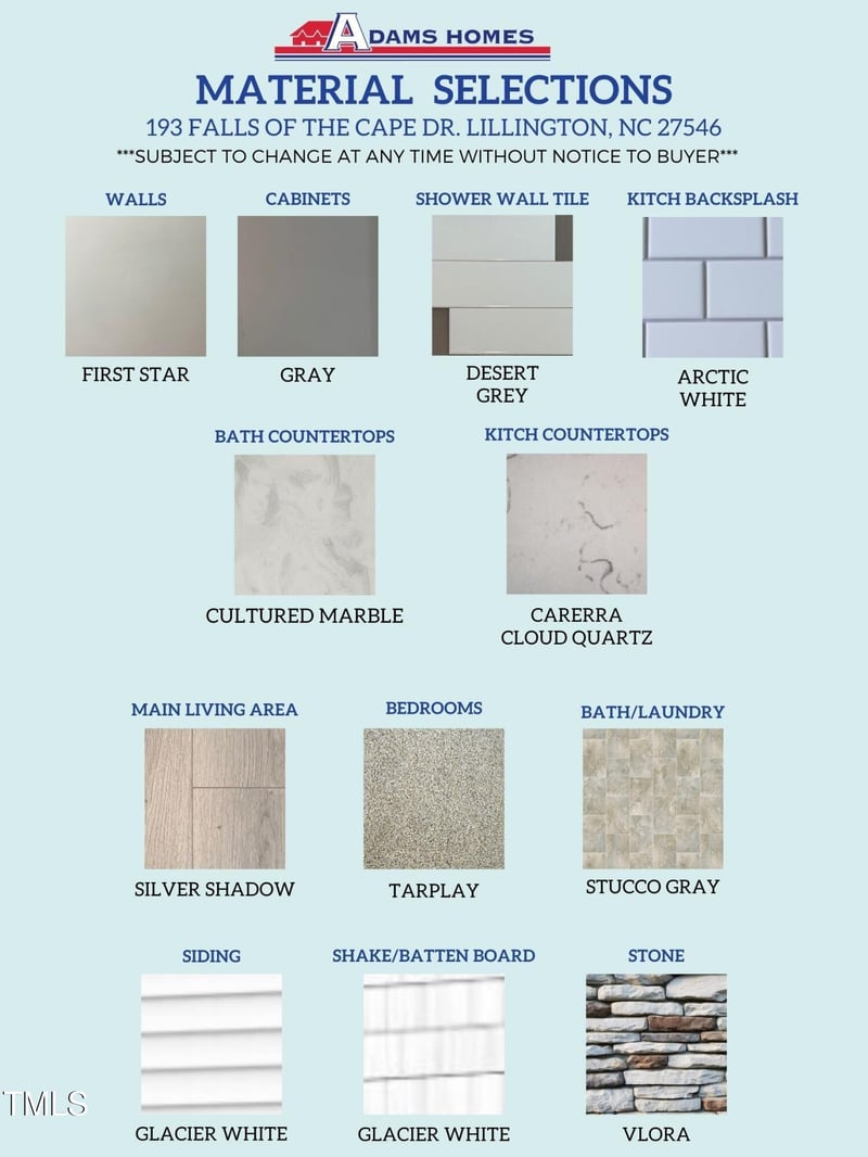 Listing details for 193 Falls Of The Cape Dr, Lillington, NC 27546 : Move-in Ready! Here is the amazing 2131 Plan by Adams Homes. This plan offers amazing value to you and everyone who walks through it's doors. Step through the Front Door and your greeted by the MASSIVE Family Room that stretches from the front to the back of the home. The Powder Room sits at the front by the door for easy access after those extra long drives. Walk through the Family Room and right in the middle of the outside wall you'll find the Fireplace, bringing the room together when you want to get close to the fire on colder nights. Step out of the Family Room into the large Dining Area between it and the beautiful Kitchen. There's plenty of space to fit a large table that everyone can gather around during those special occasions. Step into the Kitchen and you'll find the latest Fridgidaire's Gallery appliances with the included Oven, Microwave and Dishwasher. The Stove and Microwave that come with this home have multiple features including both being Convection Ovens and also boast an Air Fryer setting! It'll be like having two ovens when you cook all that delicious food when you have guests over. Off the Kitchen is a small Mudroom that separates the Kitchen from the Garage. Head back to the front of the home and make your way up the stairs. At the top of the stairs you'll find the three Guest Bedrooms along the Hallway leading to the Guest Bathroom and spacious Laundry Room. The Guest Bedrooms provide your family and guests a comfortable space to relax and have time to themselves. On the other side of the stairs is the Master Suite, with the sleeping quarters boasting a Tray Ceiling with Crown Molding, giving you that feeling of openness and elegance. The Master Bathroom boasts a large Double Vanity and your choice of either a luxurious Soaking Tub or a separate Tile Walk-In Shower. The Master Closet also boasts plenty of space for all of your favorite outfits. Hurry in today to see this beautiful home and make it yours! Contact the Listing Agent for further details. IMAGES ARE OF A FINISHED EXAMPLE. SEE SECOND IMAGE FOR CURRENT STAGE OF CONSTRUCTION BUYER INCENTIVES.