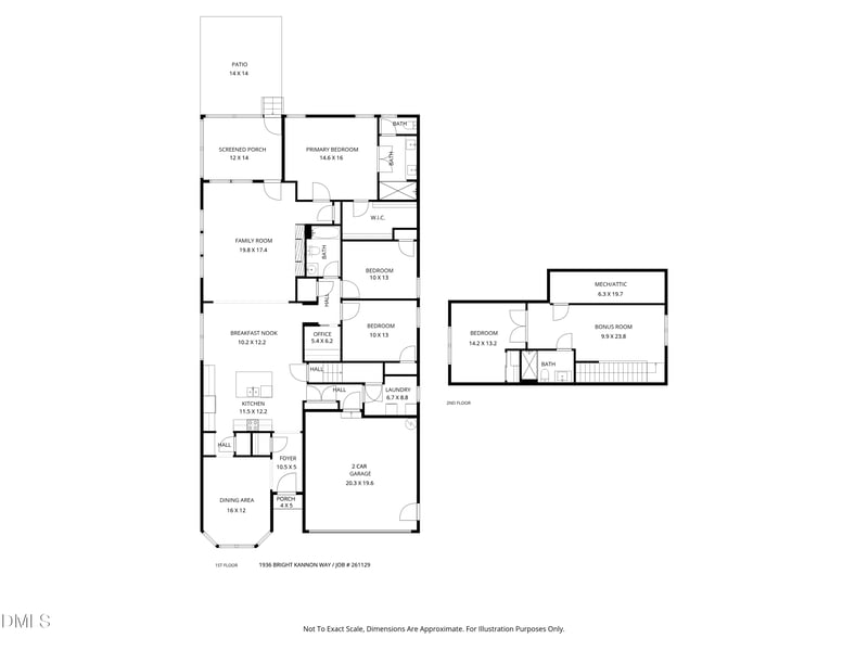 Listing details for 1936 Bright Kannon Way, Wendell, NC 27591 : Beautiful 1.5-story home in Wendell Falls featuring 4 bedrooms and 3 full baths with a finished second level. Second level completed 2025 with new mini-splits for heat and air. Open floor plan with abundant natural light and functional living spaces and plantation shutters. The main level includes 3 bedrooms, while the second floor offers a gorgeous private 4th bedroom with luxurious new full bath and a loft area - ideal for weekend visits. Kitchen features updated stainless appliances, including a Bosch dishwasher and double-oven range, with lots of cabinet storage, counter space and large pantry. Spacious owner's suite on the main level includes a huge walk-in closet. The hall closet has been converted to a home office, you'll love the efficiency! Enjoy outdoor living on the screened porch overlooking a newly added patio for endless entertaining options. Generous storage throughout the home. Located within walking distance to community amenities, including the pool and Farmhouse Café, with convenient access to downtown Raleigh, shopping, dining, and major roadways. Super close to Treelight Square hosting a community splash pad, restaurants, coffee shop, fitness center, walking trails