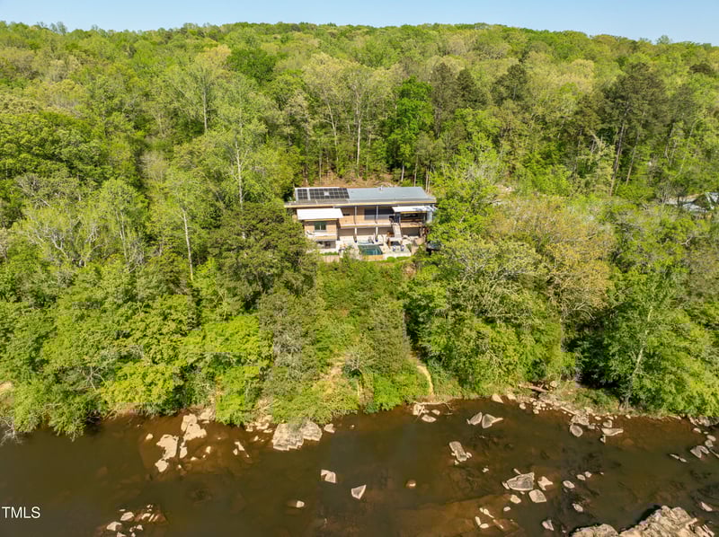 Listing details for 196 Paces Mill Trl, Pittsboro, NC 27312 : A Majestic Haven on the Haw Welcome to an extraordinary riverside sanctuary less than 20 minutes from the heart of Chapel Hill and the University of North Carolina. This 21-acre estate, gracing the banks of the majestic Haw River, seamlessly blends luxury living with natural splendor. The property features nearly a mile of private riverside trails, perfect for hiking or accessing the river for canoeing, kayaking, and fishing—with abundant bass, carp, crappie, sunfish, and bluegill. This enchanting refuge teems with wildlife. Deer regularly graze the grounds, while otters and beavers make their home along the riverbank. Bird enthusiasts will marvel at the diverse avian population, including majestic bald eagles, great blue herons, ospreys, warblers, and kingfishers. Your home is comparable to this natural environment's beauty. Built in 2020 and designed by acclaimed architect Arielle Schechter—recognized among Forbes Magazine's 200 Best Residential Architects of 2025—this contemporary masterpiece showcases sophisticated design that harmonizes with its stunning setting. Breathtaking views of what many consider the river's most picturesque section are displayed through expansive windows, seemingly dissolving the boundary between indoors and out. Environmental consciousness meets luxury in this near net-zero residence, featuring: * Rooftop solar array * Geothermal heating and cooling * Triple-glazed European passive house windows and doors * Advanced water catchment system with dual 5,000-gallon cisterns * Solar reflective shades The property's resort-like amenities include: * Infinity pool with spa * Sauna * Steam shower * Separate workshop building with exercise room and upstairs bonus room * Private yurt This secluded residential resort offers an unparalleled living experience that must be seen to be truly appreciated.