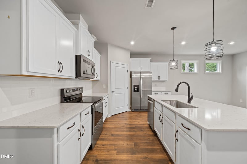 Listing details for 199 Whistle Post Dr, Selma, NC 27576 : Beautiful Transitional Ranch style home in Johnston County on large lot. Spacious open floorplan offers 4 bedrooms, vinyl plank flooring in all living areas and 3 of the bedrooms, large fenced backyard, screened patio and 3 car attached garage. Family room has gaslog fireplace and ceiling fan which opens to dining area with access to rear patio. Kitchen has a large island with breakfast bar and sink, a pantrty, stainless steel appliances, dishwasher, microwave and built in electric range and granite countertops with tile backsplash. Laundry is conveniently located near kitchen and bedrooms; washer and dryer remain. The primary bedroom has carpeting and a gorgeous ensuite bath with double sink vanity, solid surface countertop, large beautiful walk in shower and huge Walk in closet nearby. Bring your buyers to see this lovely home in Collins Station Subdivision with lots of space inside and out!!