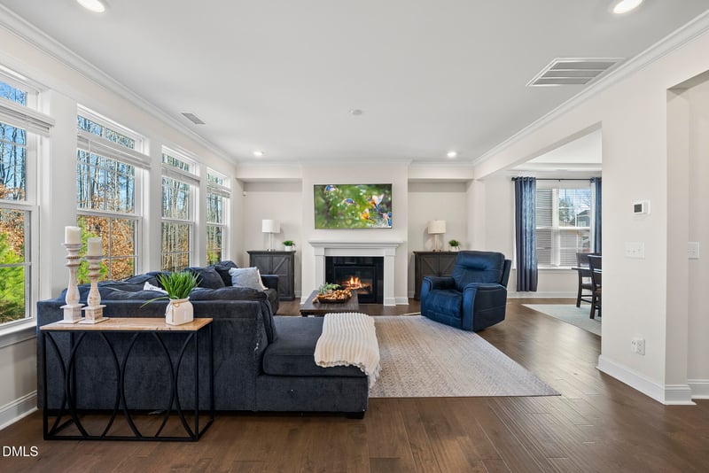 Listing details for 2001 Latham Oaks Ave, Wake Forest, NC 27587 : Set in the sought-after Tryon community of Wake Forest, this home delivers exceptional space, flexibility, and amenity-rich neighborhood living—an increasingly rare combination. With SIX BEDROOMS, FOUR FULL BATHS, and multiple flexible living areas, the layout is designed to adapt beautifully to everyday life. The MAIN LEVEL features a private GUEST SUITE, engineered HARDWOODS throughout the common areas upstairs and down, and abundant natural light. At the heart of the home is a chef's kitchen with generous quartz countertop prep space, a walk-in pantry, large island, 42'' cabinetry, herringbone tile backsplash, wall oven, and a 5-burner gas cooktop—ideal for both casual meals and entertaining. The family room opens to a screened porch and patio overlooking a WOODED BUFFER, offering privacy and peaceful views. Upstairs, the spacious primary suite includes three closets, dual vanities, a soaking tub, and a large tiled shower with bench. A second-floor loft, oversized laundry room, and a huge third-floor suite provide exceptional flexibility for work, guests, or recreation. Tryon is known for its sidewalks, green space, walking TRAILS, POOL, and playground, and it connects seamlessly to two neighboring communities—creating miles of enjoyable walking and outdoor space. The location is CONVENIENT TO SHOPPING, dining, and local favorites like Farm Table and Gatehouse Tavern, both by acclaimed restaurateur Giorgio Bakatsias, and is just minutes from Heritage Golf Club.