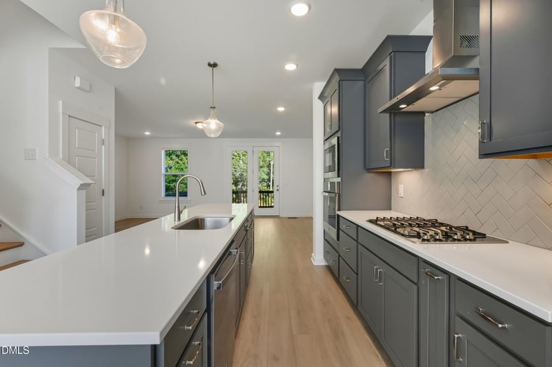 This LIKE-NEW home boasts an expansive ROOFTOP TERRACE with peaceful WOODED VIEWS, plus a back deck and lower-level patio for multiple outdoor living options. Inside, the CHEF'S KITCHEN features an oversized island, gas cooktop, sleek cabinetry, and high-end finishes, seamlessly flowing into the bright, open living and dining areas.