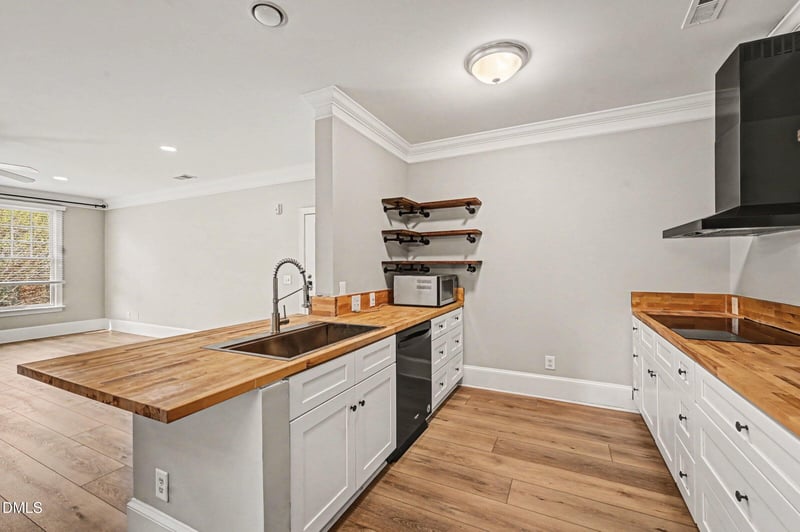 Listing details for 201 Finsbury St #Apt 303, Durham, NC 27703 : Welcome home to this cute-as-a-button 3rd-floor condo in a desirable Durham location. Bright and airy with an open floor plan, the living room, dining area, and kitchen flow seamlessly together--perfect for everyday living and entertaining. The kitchen features butcher block countertops and crisp white cabinetry. A convenient half bath in the hallway is ideal for guests. The oversized primary suite offers a private bathroom and plenty of space to relax. Step outside to the beautiful terrace, the perfect spot to enjoy your morning coffee. Priced to sell--schedule your showing today!