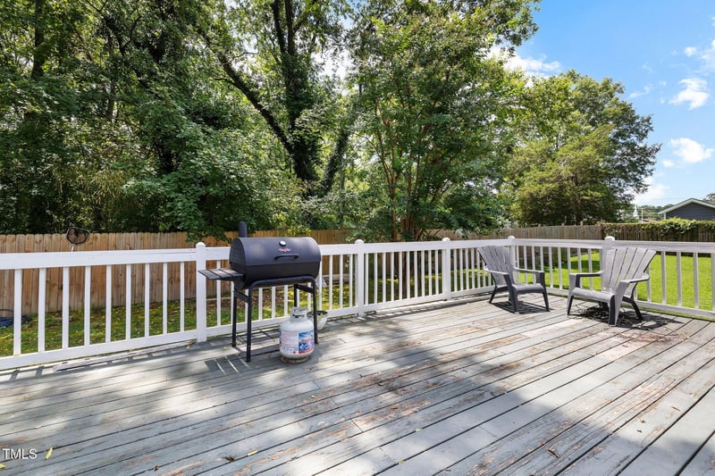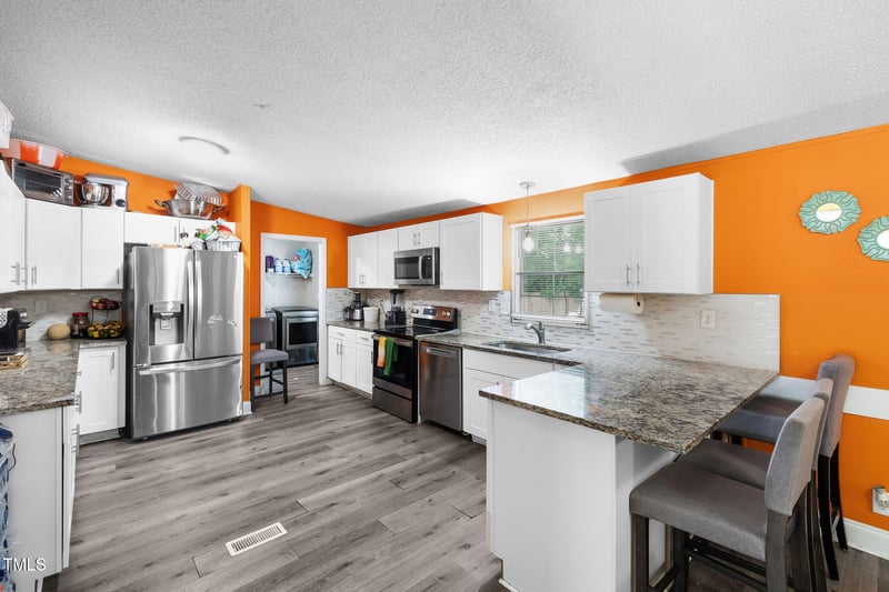 Listing details for 202 Cooper St, Louisburg, NC 27549 : Discover this stunning 3-bedroom home with a dedicated office, designed for comfort and style. The open-concept layout showcases a chef-inspired kitchen complete with granite countertops, custom tile backsplash, and stainless steel appliances. Wide-plank LVP flooring flows seamlessly throughout, creating a warm and modern feel. Relax in the oversized primary suite featuring a spa-like bathroom and spacious walk-in closet. Step outside to a screened porch, large deck, and private wooded backyard—perfect for entertaining or unwinding in your own oasis.