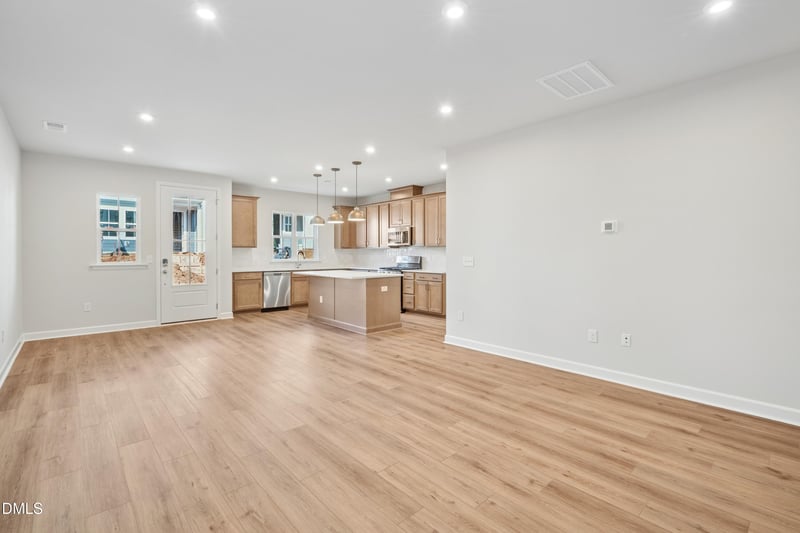 Listing details for 202 Solaire Al, Wake Forest, NC 27587 : This Wilson floorplan features 3-bedrooms, 2.5 baths, spacious loft, and attached 2-car garage. Upgrades throughout the first floor include a beautiful kitchen with upgraded quartz, soft close cabinet doors and drawers, a large island, walk-in pantry, and pendant lighting, all complemented by EVP flooring throughout. The oak tread staircase leads upstairs to a versatile loft--perfect for a home office or additional entertaining space. The primary suite offers a tiled shower and large walk-in closet, while two additional bedrooms, a full bath, and laundry room complete the second floor. A convenient drop zone at the garage entry adds everyday functionality. Additional highlights include 9-ft ceilings on all floors, tankless gas water heater, Ring doorbell, Schlage smart lock, EV charging outlet, and whole-house surge protector. Enjoy resort-style living in the community with a 15-acre lake, pool, clubhouse, parks, and trails--perfect for active, connected living!