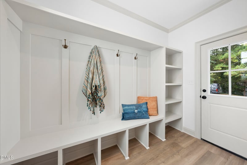 Listing details for 203 Baggett Ave, Raleigh, NC 27604 : Tucked into the beloved Belvidere Park neighborhood, 203 Baggett Avenue offers the perfect blend of modern comfort and timeless character. Just minutes from downtown Raleigh and convenient to RDU, this Cape Cod meets Southern charm is surrounded by everyday conveniences: schools, parks, greenways, local restaurants, coffee shops, and bakeries. It's a home with roots in community, where neighbors still pause to say hello and seasonal gatherings are part of the rhythm of life. Inside, light-filled spaces and thoughtful design make daily living and entertaining easy. The centerpiece of the home is the kitchen, where a large island, quartz countertops, Thermador appliances, and abundant storage set the stage for everything from morning coffee to weekend dinner parties. The main-floor primary suite is a true retreat with a spa-like bath and spacious walk-in closet, plus a laundry room right where you need it as well as a guest bedroom and full bath on the first floor. Upstairs, two more bedrooms, a full bath, a second laundry room, and a versatile bonus room offer flexibility for every stage of life. A generous mudroom, office nook, and two finished walk-in storage rooms keep everything organized. Out back, a mature shade tree anchors a wide yard and deck, an inviting setting for cookouts, play, or simply unwinding.