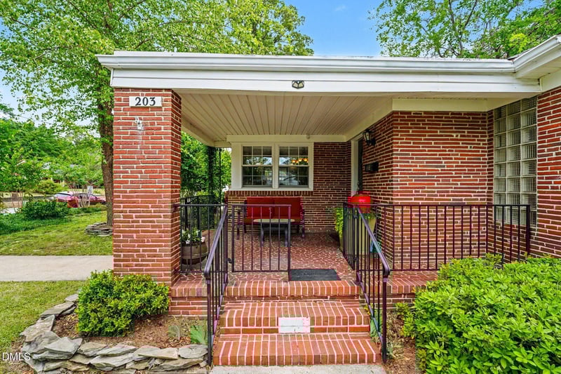 Listing details for 203 Davis St, Smithfield, NC 27577 : Charming historic brick home in the heart of downtown Smithfield! This character-filled residence blends timeless craftsmanship with spacious living areas, flexible room options, and exceptional outdoor spaces. Classic curb appeal welcomes you with a covered front porch, mature trees, established landscaping, and a beautifully maintained corner lot. Inside, enjoy original hardwood floors, oversized windows, glass brick accents in the living room and one bedroom, and abundant natural light throughout the main living spaces. The inviting living room features a fireplace with natural gas logs and opens to a formal dining room ideal for entertaining. The kitchen offers unique cabinetry, workspace, and vintage charm. A large additional den/flex room or potential bedroom provides endless possibilities for a second living area, home office, guest room, recreation room, or media space, complete with plantation shutters. The breezeway/sitting room features French doors with plantation shutters leading to the additional living area, adding style and privacy. Multiple bedrooms plus an upstairs bonus/flex space create room for guests, hobbies, or private retreat options. Unfinished basement offers extra storage and washer/dryer hookups. Step outside to enjoy a private courtyard patio, covered porch areas, and a peaceful koi pond complete with koi fish, creating a truly unique outdoor retreat. Situated in a highly walkable neighborhood just blocks from the Greenway and within walking distance to the Smithfield Library, local shops, dining, parks, and community events. Rare opportunity to own a spacious home full of warmth, charm, and architectural character in one of downtown Smithfield's most desirable locations.