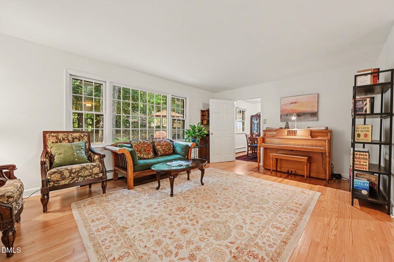 Listing details for 203 Wood Cir, Chapel Hill, NC 27514 : Situated in the desirable Coker Hills neighborhood, this inviting 4-bedroom, 2 full bath home offers comfort, charm, and an exceptional Chapel Hill location. A welcoming entry and covered front porch set the stage for a warm and inviting interior. The thoughtfully designed layout features bright living and dining spaces, complemented by a spacious family room with distinctive brick flooring, a wood-burning fireplace with brick façade, and direct access to the outdoors--perfect for both everyday living and entertaining. Beautiful hardwood floors extend throughout much of the home, adding timeless appeal. Enjoy outdoor living with a private patio and a generously sized yard enhanced by attractive landscaping, ideal for relaxing or gathering with guests. Conveniently located just minutes from UNC, I-40, Eastgate Plaza, Whole Foods, and a variety of shopping and dining options, this home offers both tranquility and accessibility in one of Chapel Hill's most established neighborhoods.