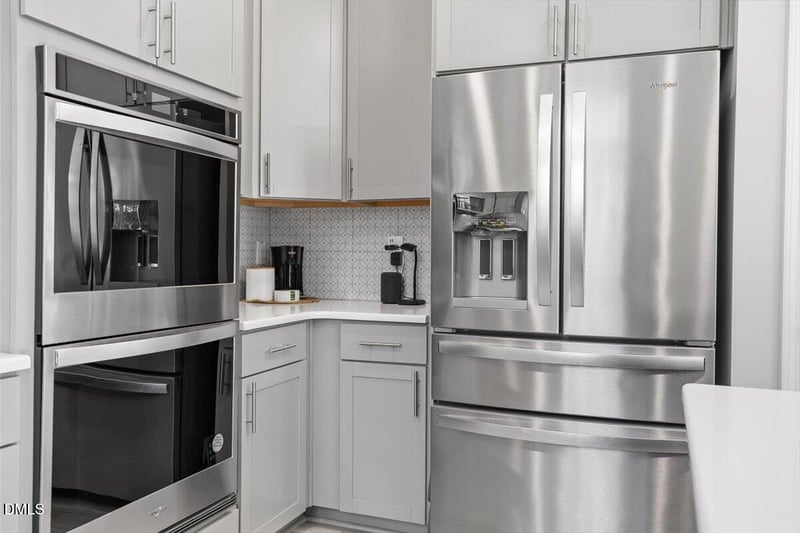Listing details for 2040 Feather Rock Dr, Durham, NC 27704 : Former model home in the quiet Timberleaf community with thoughtfully selected upgrades and ENERGY STAR® certified efficiency. The light-filled main level features 9-ft ceilings and luxury vinyl plank flooring. The upgraded kitchen includes a double wall oven, gas cooktop, microwave, stainless steel refrigerator, Silestone countertops, custom backsplash, and a center island overlooking the family room. A dedicated first-floor office with French doors, built-in cabinetry and a beverage center provides an ideal workspace. Upstairs, the primary suite offers a spacious walk-in closet and en suite bath with dual-sink vanity, private water closet, linen closet and tiled shower. The loft offers a spacious flex space or potential 4th bedroom. Two additional bedrooms, a full bath, and a laundry room complete the second level. The covered patio extends the living space outdoors. Additional highlights include: • Heated and cooled garage • Bluetooth-integrated speakers throughout • Cement board siding • Smart home features Just minutes to Downtown Durham and DPAC, with convenient access to I-85, the new Publix shopping center, Southpoint, Brier Creek, and RDU Airport.