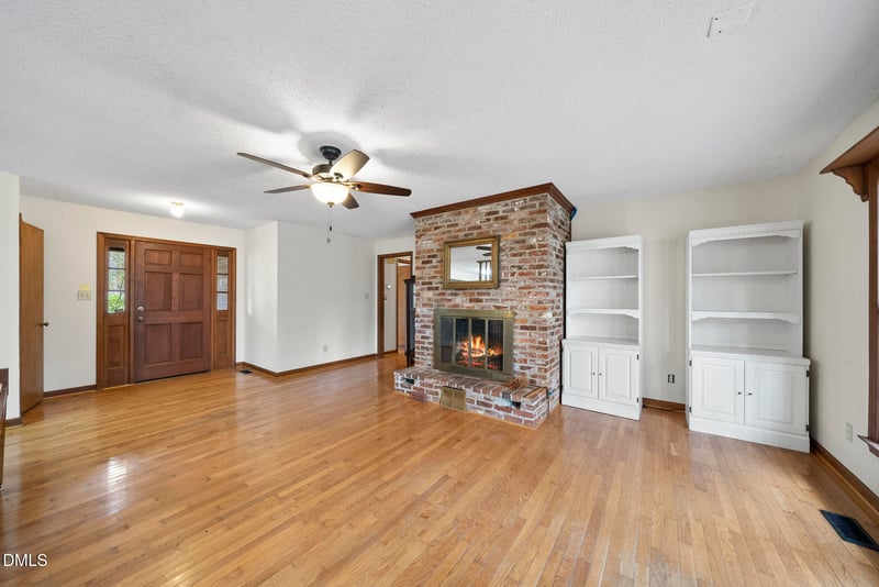 Listing details for 205 Wilder St, Louisburg, NC 27549 : Charming single-story home, perfectly suited for investors or buyers looking to craft their ideal home little sweat equity! Nestled on a large, private 0.79 acre lot, this property offers peaceful surroundings with plenty of room to enjoy the outdoors. Relax on the inviting rocking chair front porch or unwind on the back deck overlooking a serene, wooded backyard. Inside, the home features an open kitchen and living area with warm hardwood flooring and a beautiful masonry fireplace in the living room, creating a cozy focal point for gathering and relaxing. The primary bedroom offers a private retreat complete with its own en suite bath. A beautiful setting and plenty of potential provide the perfect opportunity to make this home your own!
