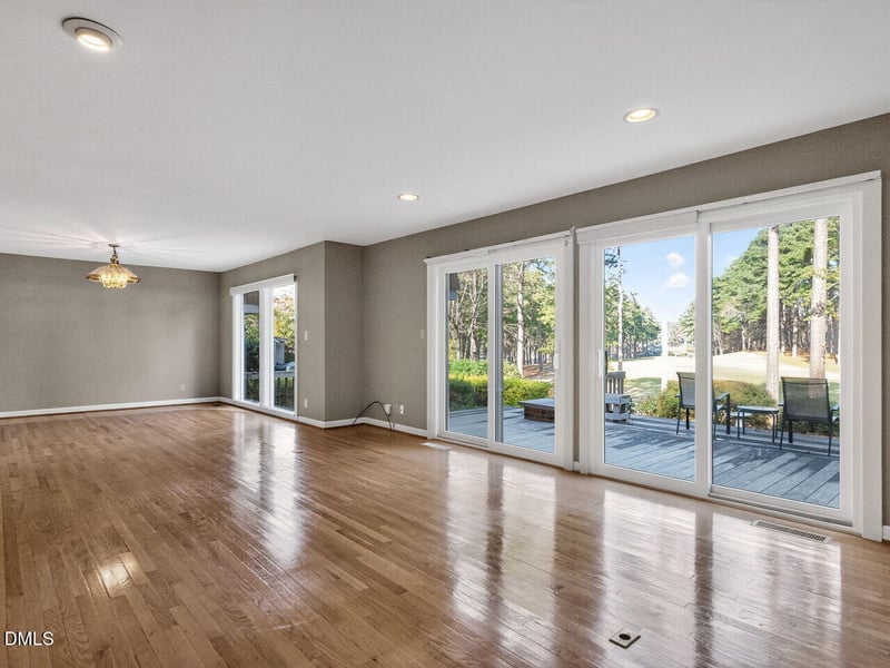 Listing details for 207 Kelso Ct, Cary, NC 27511 : Rare Opportunity to live on the 10th hole of MacGregor Downs CC. Ideal downsizing opportunity! One level living, Wall of windows in the Light & Bright Dining and Family room Amazing views from the recently replaced sliding doors. Primary suite also has sliders to the deck Move right in and enjoy low maintenace living! Low maintence, Super durable Brazillian Ipe deck overlooks the picturesque golf course. Oversized garage with tons of storage & a slop sink. No monthly HOA dues, Voluntary $120 per year to MacGregor Downs HOA
