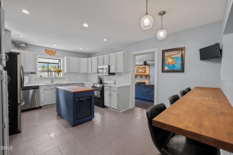 Listing details for 208 Church St, Fuquay Varina, NC 27526 : Welcome to this beautiful 1852 sq. ft. ranch home located in downtown Fuquay Varina on a nicely sized .31 acre lot! If a quick stroll to shopping, dinner, parks in either of our downtowns is your thing then you will love this location! Homes like this simply don't come around often! The two story Barn/ Garage with garage door is perfect for traditional parking or a fun hobby that needs extra space. Fantastic curb appeal greats you as you pull up and when you enter this home you are welcomed by beautiful wood flooring, fireplace, dining room and sitting area. Don't miss the inviting remodeled kitchen with gorgeous backsplash, granite counters, wine fridge, butcher's block island and snack bar! Kitchen also overlooks rear yard so you can enjoy the relaxing view! The cozy family room with fireplace and full bathroom is perfect for gathering together for movies. Great office space and laundry room are tucked away here as well. The remote owners suite and secondary bedrooms are accessed down the private hall. The backyard is ideal for entertaining with a spacious deck and covered area, along with fire pit for smores and sharing stories around!