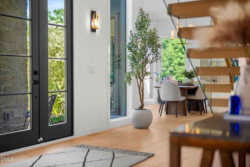 Listing details for 2105 Manuel St, Raleigh, NC 27612 : Step into refined luxury in this custom former Parade Home by DJF Builders, offering 5 bedrooms and 7 baths with exceptional finishes throughout. Ideally situated in one of Raleigh's most sought-after neighborhoods, this one-of-a-kind residence seamlessly blends curated design with effortless, move-in-ready living. A grand floating staircase with glass railings and a dramatic stone accent wall creates an unforgettable first impression. The main level features a private guest suite and a dedicated study with full-wall custom built-ins, while a glass-enclosed wine room adds a sophisticated focal point for entertaining. The chef's kitchen is both stunning and functional, featuring a Thermador appliance package, quartz countertops with a full-height backsplash, custom black inset cabinetry, a waterfall-edge island, designer lighting, and a separate scullery for added prep and storage. The primary suite is a true retreat, complete with vaulted ceilings, hardwood floors, and a spa-inspired bath showcasing marble finishes, dual oversized vanities, a zero-entry shower, freestanding soaking tub, and an expansive walk-in closet. Designed for both everyday living and entertaining, the family room features a floor-to-ceiling stone linear fireplace and flows seamlessly to a covered porch with its own fireplace--creating an ideal indoor-outdoor living experience. A fenced yard adds privacy and functionality. Conveniently located with easy access to Glenwood, Downtown Raleigh, and RTP, this home offers the perfect balance of luxury, comfort, and connectivity.