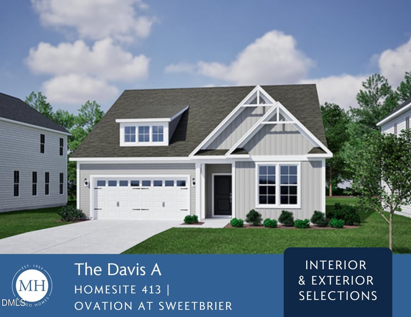 Listing details for 2117 Bull City Bend #413, Durham, NC 27703 : Discover the ease of single-level living in the Davis, a thoughtfully designed ranch-style home that blends timeless charm with modern convenience. At the heart of the home, the kitchen features a spacious pantry, quartz countertops, stainless steel appliances, and a large island that overlooks the great room and eat-in dining area. A cozy gas fireplace adds warmth and character, creating the perfect gathering spot for friends and family. The private primary suite, located just off the kitchen, is a true retreat with a vaulted ceiling, a large walk-in closet, and a spa-like bath with dual vanities and a tiled walk-in shower. Two additional bedrooms and a full bath are positioned toward the front of the home, offering comfort and flexibility for guests, a home office, or hobbies. Extend your living space outdoors with the enlarged covered rear porch—perfect for savoring your morning coffee, enjoying quiet afternoons, or hosting evening get-togethers rain or shine. For a limited time, you will also have the opportunity to personalize the interior with a dedicated design appointment, selecting finishes and features tailored to your style. Set on a premium homesite with a treelined backdrop, this home offers both privacy and natural views while keeping you close to the community's resort-style amenities. Life at Ovation at Sweetbrier means less time worrying about maintenance and more time enjoying the things you love. Community amenities include a clubhouse with fitness center, pool and spa, pickleball and tennis courts, dog parks, a community garden, scenic walking trails, and a dedicated lifestyle director who plans events and activities to bring neighbors together. Conveniently located just minutes from Brier Creek Parkway, RDU Airport, and endless shopping, dining, and entertainment, the Davis combines comfort, convenience, and connection in a vibrant 55+ community.