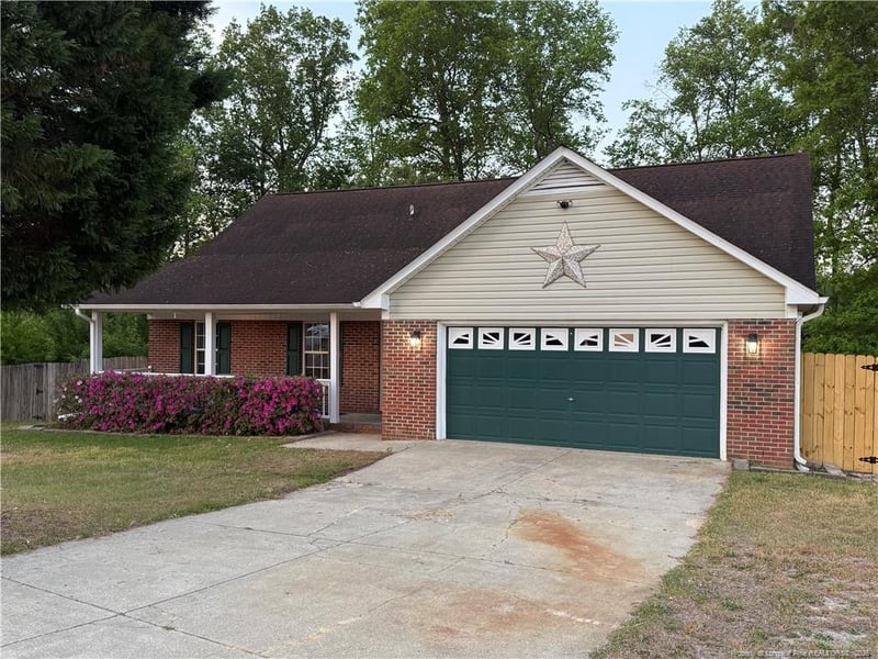 Listing details for 212 Finch Rd, Fayetteville, NC 28306 : Price Improvement! Seller offering $5,000 Concessions toward closing costs, with full price offer. Back on the market due to no fault of the Seller: Welcome home to this move in ready home, nestled in the back of the subdivision on a cul-de-sac, backing up to trees for ultimate privacy! Freshly painted, inside and out (to include deck, front rails, front porch and custom pantry floor in garage). Relax on your back deck, overlooking the above ground pool or the covered front porch or on a chilly night, cozy up to the wood burning fireplace in the living room. Pool received new liner in summer 2025 and new pump April 2026. This home has space, inside and out! With 5 bedrooms and plenty of closets and storage space inside, 3 full bathrooms and a DOUBLE LOT totaling just over an acre, there is plenty of room to entertain or simply enjoy the pleasantries of family in a private setting. Custom wood folding counter in laundry space is a gorgeous upgrade to make the mundane a little easier. Tile flooring throughout main areas downstairs and brand new carpet in all bedrooms as well as on stairs leading to the upstairs bonus (closets included easily make this a 5th bedroom or bonus) and 4th bedroom, equipped with dual entry full bathroom. Before heading outside, note the custom pantry in garage and functioning stainless steel fridge in the garage, great for additional grocery storage or cool drinks for the hot summers. While out back, enjoy 2 gala apple trees, 2 pear trees, 2 peach trees and a wild plum tree that is overrun with fruit in the summer. Don't forget to tour the solidly constructed barn-style shed with loft in the backyard, which has a great port area for a ride on mower, golf cart or other ride-ons. Minutes from I-295 for quick commutes. Don't miss your opportunity to grab this home up and be ready for pool season, just around the corner.