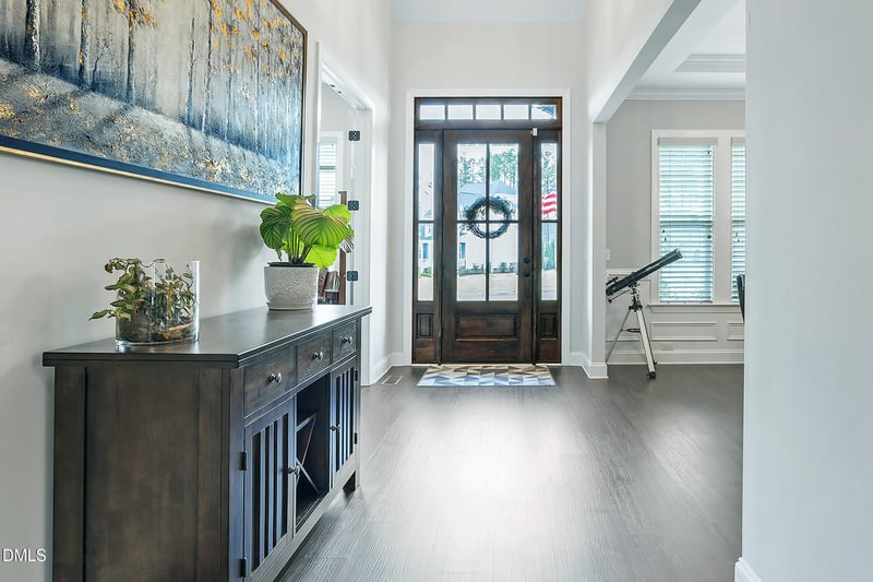 Listing details for 213 Center Hill Dr, Holly Springs, NC 27540 : Spacious executive home on a large lot in fast-growing Holly Springs. Great curb appeal! Easy-care fiber cement siding with stacked stone accents. Side-load garage and lots of driveway space for guest parking or outdoor sports. Newly installed beautifully upgraded landscaping. Dine al fresco or just kick back and relax on the spacious covered rear porch with vaulted ceiling overlooking the large level backyard. This outdoor living space has great privacy. Walk to the neighborhood pool for a quick dip, or an afternoon socializing with neighbors. Designed and built by Ashton Raleigh Residential, the heart of the home is a delightful open-concept space. The family room, kitchen, and breakfast area flow seamlessly together. A gourmet's delight, the stylish kitchen features a large island, 5-burner gas cooktop, stainless-steel wall ovens, a dramatic stainless-steel vented hood, an apron-front sink, and a spacious walk-in pantry. The stainless-steel French-door refrigerator conveys with the home. Savor that second cup of coffee or tea in the beautiful breakfast room with three walls of windows, and a stellar view of the backyard. The family room also has a wall of windows overlooking the covered back porch and verdant backyard beyond. This welcoming space features a cozy gas-log fireplace, and built-in bookshelves with cabinets below. The home is light and bright and features 8-foot doors on the main level and lots of tall windows. Hardwood flooring graces the main living spaces. The soaring foyer greets you and your guests. It is flanked by an elegant formal dining room, and by a home office with French doors. The dining room has elegant wainscot and a trey ceiling. The office space also has wainscot, and it has a delightful bay window. In addition to serving as a convenient home office, this room would make a great library or music room. A butler pantry between the dining room and the kitchen features tall French doors and gives storage and display space for your decorative glassware and other special items. The primary bedroom suite is on the main level and is large enough to include a sitting area with direct access to the back porch. It has a vaulted ceiling and plush carpet. The en suite primary bath has two vanities, a large soaking tub, a separate shower, and a separate water closet. The primary suite's walk-in closet is spacious. The main level is rounded out by a convenient mudroom entry from the garage with a custom built-in drop zone, and a laundry room with a newly-installed sink. There is a powder room on this level. The staircase to the second floor is conveniently located at the center of the house. Upstairs you will find three generously-sized bedrooms each with plush carpet and a walk-in closet. Every bedroom has direct access to a full bathroom. There are two large recreational spaces on the second floor. One is a loft-style bonus room. The second is more tucked away and is well suited as a media room, game room home theater, playroom, or second home office. Holly Springs is an outstanding location with temperate weather and a robust job market. US1, NC55, and NC540 provide convenient access to major employers in the area. Enjoy the region's world-class healthcare, and arts and entertainment venues, museums, and professional and college sports. The Raleigh-Durham International Airport is less than 30 minutes away. It offers direct flights to 80 destinations, including non-stop flights to 14 international airports. Downtown Holly Springs offers a vibrant night-life. The B. Everette Jordan Lake and Harris Lake Recreation Areas are nearby with boating, fishing, hiking, camping, mountain-biking, and even Frisbee golf. Enjoy Ting Park and Bass Lake Park. Nearby Devil's Ridge Golf Club (John LaFoy designed), and The Club at 12 Oaks (Nicklaus Design Group), both offer membership opportunities for golf, and other recreational and social amenities.