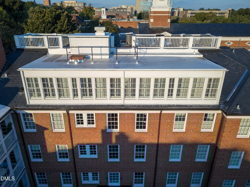 Listing details for 213 Franklin St #400, Chapel Hill, NC 27514 : Experience the Pinnacle of Chapel Hill Living — The Penthouse at 213 E Franklin Street Perched atop one of the most coveted addresses in downtown Chapel Hill, this extraordinary one-level penthouse residence offers a rare opportunity to own a true architectural gem on Franklin Street. With private elevator accessdirectly to your top-floor one-level suite, enjoy complete privacy and convenience in the heart of town. Bathed in natural light from banks of East- and West-facing windows, the home showcases stunning views — including four landmark steeples and breathtaking skies from dawn to dusk. Inside, timeless hardwood floors flow throughout the open-concept living spaces, anchored by a sophisticated fireplace that invites both relaxation and refined entertaining. The top-tier kitchen features Carrara marble countertops, classic marble tile, and professional-grade Viking stainless appliances — a perfect blend of elegance and performance. With three spacious bedrooms, each with its own en-suite bathroom, plus a stylish powder room, the layout is ideal for hosting guests or accommodating family in complete comfort. The luxurious primary suite is a sanctuary unto itself, featuring dual vanities, a walk-in shower, a separate soaking tub, and charming black-and-white tile that evokes timeless hotel luxury. Additional amenities include secure 2 private garages and seperate storage — rare and valuable in a downtown setting. Step outside your door and into the cultural heartbeat of Chapel Hill — stroll to Tar Heel games, local cafés, fine dining, and everything this vibrant downtown has to offer.