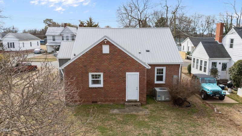 Listing details for 213 Guthrie St, Graham, NC 27253 : This well-maintained brick home offers classic character and thoughtful updates in a desirable Graham location. The home features 2 bedrooms and 1 bathroom, with refinished hardwood floors throughout the living room, dining room, hallway, and bedrooms. A sunroom with tile flooring and multiple windows provides a bright and versatile space suitable for a study, reading room, or additional living area, with direct exterior access. Updated light fixtures are featured throughout the home. The kitchen includes new lower cabinetry, laminate countertops, and open shelving. The bathroom is equipped with a clawfoot tub with shower attachment and an updated vanity. The living room features a fireplace with gas hookup (no logs; fireplace to be evaluated). The primary bedroom is located at the front of the home and includes two large armoires that will convey. The upper level offers flexible space ideal for a home office or study area, along with a walk-in attic providing ample storage. Recent improvements include buried Duke Energy service, upgraded 200-amp electrical service (February 2025), kitchen electrical upgrades, decommissioned interior fuse box, metal roof replacement (October 2024), vinyl windows (February 2025), and water heater (2023). The property is conveniently located near downtown Graham, shopping, and interstate access. Refrigerator conveys. Storage shed does not convey. A recorded encroachment agreement exists for the driveway with the left neighbor, and a shared driveway easement applies to the first 15 feet from the road with the right neighbor.