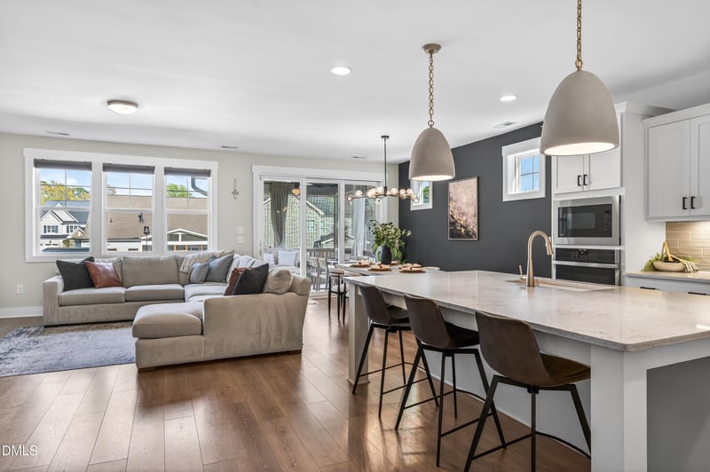 Listing details for 213 Thunder Forest Ln, Wendell, NC 27591 : Welcome home to this 5 bedroom, 4 bathroom home in the highly sought after Wendell Falls Community where everyday feels like a getaway. Designed with flexibility in mind, the 2 bedrooms on the main level offer space to host guests, have an in-home office, or for multi-generational living. The open floor plan is flooded with natural light and the gourmet kitchen features designer pendant lighting, quartz countertops, a natural gas cook top, wall oven, and an eat in island. Upstairs you will appreciate the large open loft, 3 spacious bedrooms, and 2 additional full bathrooms. Enjoy effortless indoor-outdoor living with 9ft stacked sliding glass doors that lead to a screened in porch and adjoining grilling deck that overlooks the fully fenced back yard. Wendell Falls offers unmatched amenities designed for an active and connected lifestyle. The Farmhouse serves as the community hub, featuring a café, zero-entry saltwater pool, and a fully equipped fitness center. Residents can also enjoy multiple playgrounds, over 10 miles of scenic trails, and 273 acres of parks and open space--providing endless opportunities to explore and enjoy the outdoors.