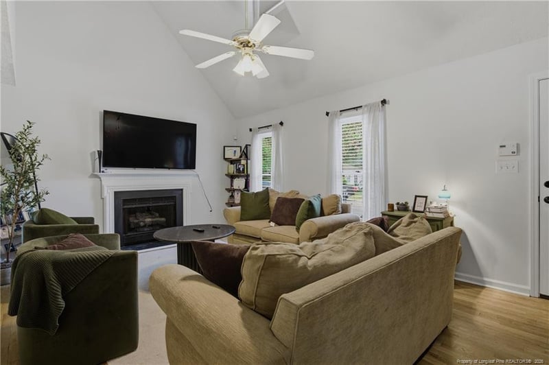 Listing details for 2130 Hull Rd, Fayetteville, NC 28303 : Discover the perfect blend of modern comfort and timeless charm in this beautiful 3 bedroom, 2 1/2 bath home nestled in the highly sought-after historic Haymount area. Tucked away on a quiet dead-end street, this home offers privacy and peaceful living in a prime location. The spacious great room has a soaring vaulted ceiling allowing light to flood this room and it has a fireplace with gas logs, creating the ideal space for relaxing or entertaining. The open kitchen features stainless steel appliances and flows seamlessly into the dining area, where a door leads to the fenced backyard and patio-perfect for outdoor gatherings. The main level primary suite is a a true retreat with it's own vaulted ceiling, updated LVP flooring, and a beautifully renovated bath featuring a tile walk-in shower, new vanity, and stylish light fixture. Upstairs, you will find two comfortable guest bedrooms and a full bath. Step outside to enjoy the private patio, ideal for grilling and entertaining guests. Recent updates by the seller include updating the primary bath & adding LPV flooring in the primary bedroom, refinished the hardwood floors in the great room, kitchen and dining area, and painted the downstairs. This charming home is ready for a new owner to call it their home.