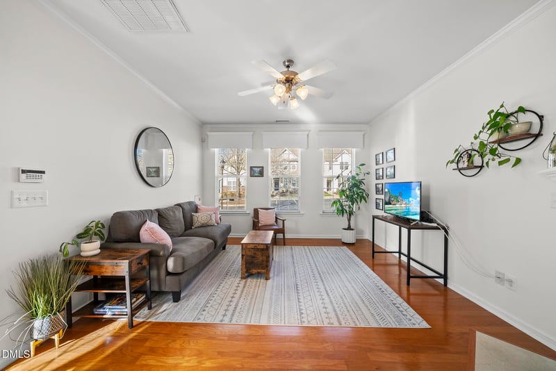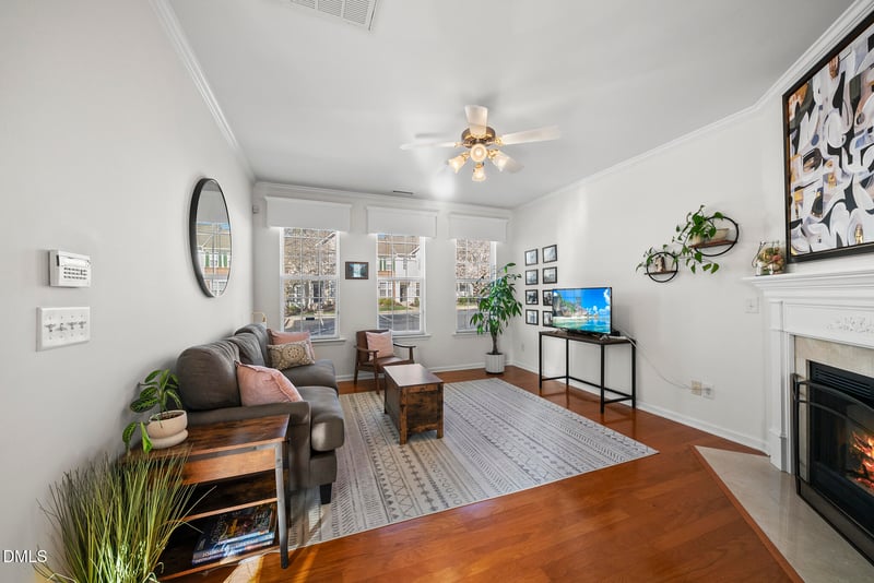Listing details for 214 Grey Elm Trl, Durham, NC 27713 : Welcome to 214 Grey Elm Trail, a well-maintained end-unit townhome offering bright, open living spaces and a highly convenient South Durham location. Full interior paint 2023. The main level features hardwood floors, abundant natural light, and a spacious living room anchored by a cozy fireplace creating a warm and inviting atmosphere for both everyday living and entertaining. The open layout flows seamlessly into the dining area and kitchen, where you'll find ample cabinetry, generous counter space, and a functional design that makes meal prep and hosting easy. A convenient main-level powder room adds everyday practicality. Upstairs, you will find both bedrooms are ensuite. The primary offers a comfortable retreat with large windows overlooking a wooded backdrop, large WIC, and an updated bath featuring a modern vanity and clean finishes. The second bedroom provides flexibility for guests, home office space, or hobbies. Step outside to enjoy a private back patio and backyard area with a peaceful, tree-lined setting, perfect for relaxing or unwinding at the end of the day. Quick access to highways (I-40, NC-54, Hwy 55), making commuting throughout the Triangle simple. Just minutes away, you'll find a wide variety of shopping and dining options, along with nearby grocery stores, restaurants, and everyday conveniences. The home is also conveniently located near Research Triangle Park, downtown Durham, and area greenways and parks. With its combination of natural light, functional layout, and prime location, this home offers an excellent opportunity for comfortable and convenient living in the Triangle.