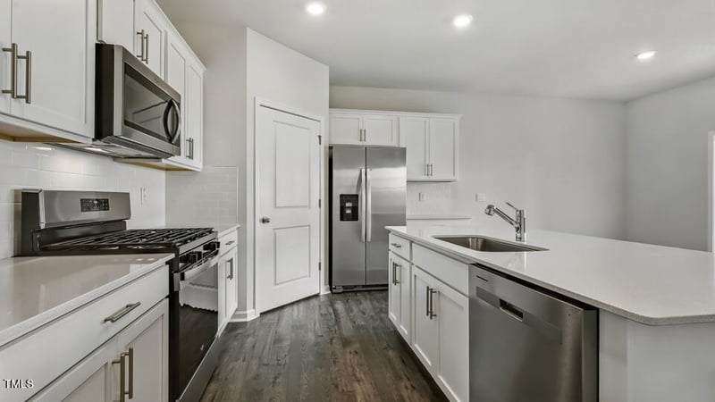 The Cali is a spacious and modern single-story home offering 3 modern elevations and designed with open concept living in mind. This floorplan features 4 bedrooms, 2 bathrooms, 1,764 sq. ft. of living space, and a 2-car garage. Upon entering the home, you'll be greeted by an inviting foyer that leads directly into the heart of the home. This open plan features a living room, dining room, and well-appointed kitchen. The kitchen is equipped with a corner walk-in pantry, stainless steel appliances, and a large island with a breakfast bar, making it perfect for both cooking and casual dining.