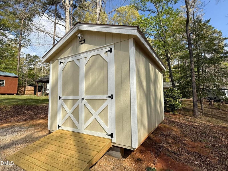 Listing details for 219 Eagle Dr, Louisburg, NC 27549 : Discover the perfect blend of comfort and convenience on this beautifully maintained 0.21-acre property located in the gated community of Lake Royale! This unique offering features an absolutely immaculate 2005 Outback by Keystone Sydney Edition 30RLS travel trailer, ideal for a weekend getaway, full-time living, or investment opportunity. The property is fully equipped with essential utilities, including a septic system, water, and electric already in place--making it truly move-in ready. A 10x12 storage shed with ramp provides ample space for tools, equipment, or outdoor gear. Enjoy easy access with a concrete entrance, along with a well-maintained gravel driveway and dedicated parking area. Whether you're looking for a peaceful retreat or a functional, ready-to-use property, this one checks all the boxes. This is a must-see property--schedule your showing today!
