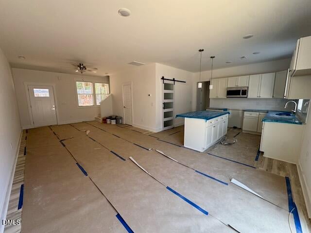 Listing details for 220 George St, Four Oaks, NC 27524 : Not all townhomes use their space this well. With a rare 30-foot-wide footprint, this interior unit offers a layout that flows easily from the living area into the kitchen--feeling a step above the standard townhouse. It's open without feeling oversized, and defined without feeling closed off. The kitchen brings everything together with quartz counter tops, a large island, pendant lighting, upgraded soft-close cabinetry, a deep stainless-steel sink, and stainless Samsung appliances. A walk-in pantry with a glass barn door adds both style and an excellent use of space. Off the garage, a mudroom with a built-in bench creates a natural drop zone, while the powder room is positioned just out of sight form the main living space. Upstairs is straightforward and well-planned-a comfortable owner's suite with double vanity; quartz countertops and soft close cabinets, glass step-in shower, and walk-in closet, plus two additional bedrooms equipped with ceiling fans, a full bath with quartz counters and soft-close cabinetry, and a walk-in laundry room where it actually makes sense-on the same floor as the bedrooms. Out back, the 10x10 patio and sliding door with tempered glass, giving you an easy extension of your living space outdoors. Located in Four Oaks, you'll experience the ease of small-town living with quick access to I-95 and a straight shot into Raleigh. If you're looking for something that offers a clean layout, elegant upgrades, and a design that just works-- this one is worth a closer look. *Samsung washer, dryer, and fridge are included!