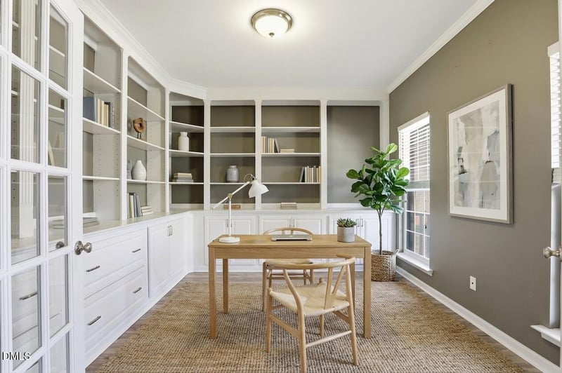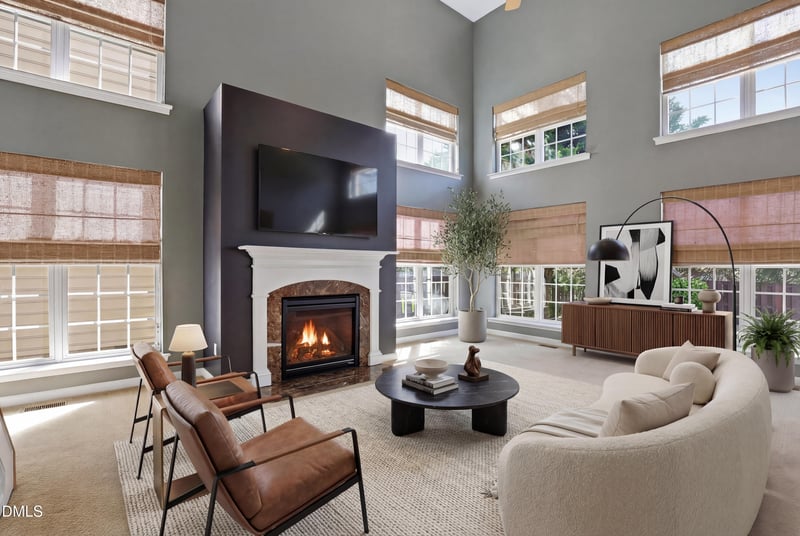 Listing details for 2202 Spacious Skies St, Raleigh, NC 27614 : You can have it all in the highly desirable Bedford at Falls River community! This stunning 5-bedroom, 4.5-bathroom smart home offers the perfect blend of elegant design and modern convenience. A grand two-story foyer welcomes you into a light-filled main level, featuring a dedicated office with custom built-ins and a versatile first-floor suite--ideal for multi-generational living or welcoming guests.