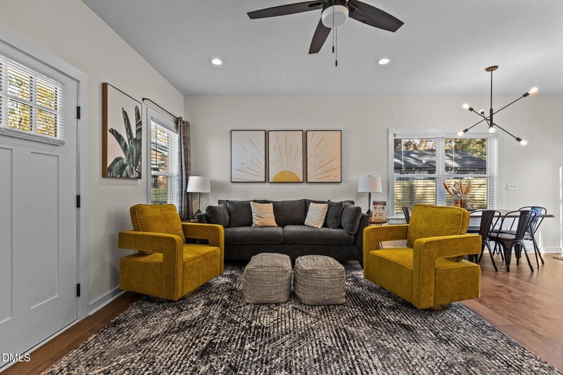Listing details for 2207-A Otis St, Durham, NC 27707 : Welcome to 2207-A Otis Street in Durham! Built in 2023, this beautifully furnished Craftsman-style home offers 1,200 sq ft, 3-bedrooms, and 2.5-baths, ideally located just 8 minutes to Downtown Durham and Duke Hospital, 15 minutes to RTP, and 20 minutes to RDU Airport--plus only 2 blocks to the American Tobacco Trail. Designed for flexibility, this home is fully furnished and move-in ready, making it perfect for short-term or long-term rental opportunities--or as a personal residence. The open-concept main level features hardwood floors, modern light fixtures, ceiling fans, recessed lighting, and a spacious family room flowing seamlessly into the dining area and kitchen. The kitchen is a standout with a gray-accent center island, white recessed panel cabinetry, white subway tile backsplash, quartz countertops, and stainless steel appliances--including refrigerator, washer, and dryer. Hardwood floors continue throughout the upstairs. The primary suite offers a sleek en-suite bath with a walk-in shower and seamless glass door, plus quartz-topped vanity. Two additional spacious bedrooms and a laundry closet with built-in wall-to-wall cabinetry provide excellent functionality. Enjoy outdoor living on the back deck--perfect for grilling. Ideal for travel nurses, relocating families, or those seeking furnished housing near Duke University. Schedule your private showing today and experience the convenience and versatility this home has to offer!