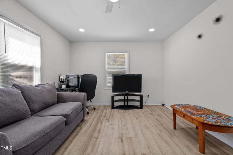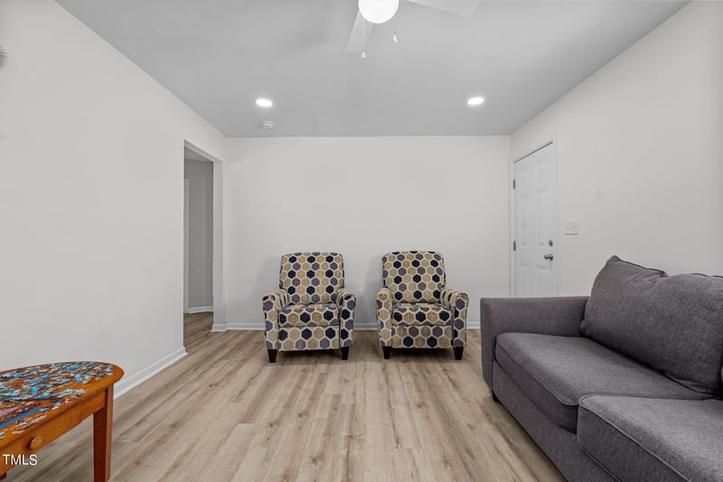 Listing details for 221 Stroud St, Sanford, NC 27330 : This newly renovated house is perfect for anyone looking for a modern interior living space. It features a cozy living room, and an updated kitchen with a dining area, two bedrooms, and one bathroom. The entire house has recently been renewed with smooth finishes, ensuring a fresh and inviting atmosphere. The living room has a welcoming space. The kitchen is equipped with appliances. The two bedrooms are well-sized, providing space for rest. On the outside it has not one, but three great storage spaces that are great to house tools, or any extra items. This house is a fantastic opportunity! Don't miss out on this home!