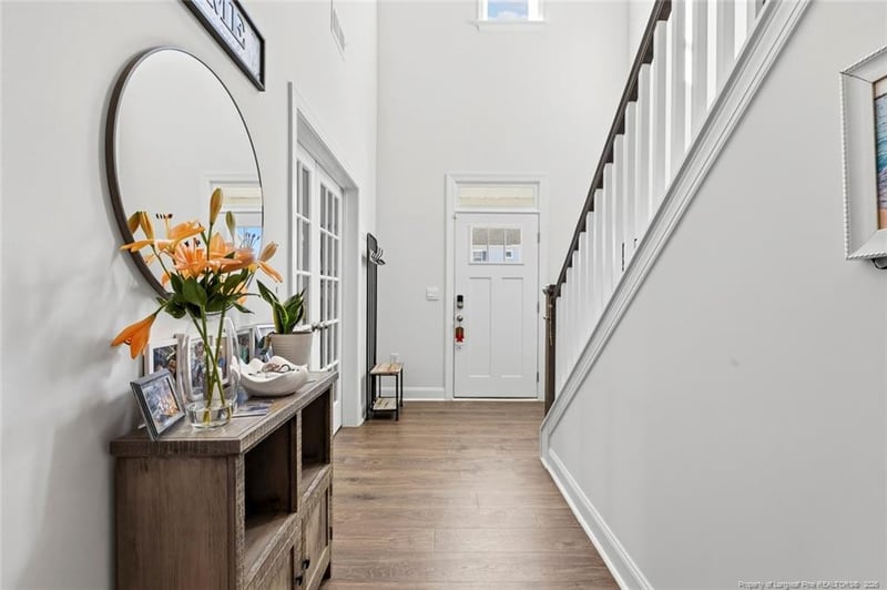 Listing details for 221 Umstead St, Sanford, NC 27330 : This spacious 2-story home boasts 3,133 square ft. of luxurious living space. Located in The Manor of Galvins Ridge located in north Ssnford. This almost new construction, 4 bedrooms, 3 full bathrooms, offers plenty of room to spread out and grow! The elegant entrance foyer will greet you with the open-concept design. The gourmet kitchen features high-end appliances, quartz countertops, and a large island - perfect for entertaining guests or preparing large meals! The first-floor bedroom provides flexibility for a guest room, home office, or playroom. The adjacent flex space can be customized to fit your needs. Upstairs, the spacious loft can offer a game room or home theater. The master suite is a true retreat, complete with a spa-like bathroom and walk-in closet. Step outside to savor the views from the covered patio and fenced in back yard. Planned amenities included pool, clubhouse, outdoor courts, miles of walking trails, dog parks, a fishing pond, and more! It is conveniently located off HWY 1 within 10 minutes, 15 minutes to HWY 540 and of major area employers such as Central Carolina Enterprise Park, Triangle Innovation Point, Pfizer, Caterpillar, Astella, and Vinfast. Our community is 30 minutes to Downtown Raleigh, 35 minutes from Research Triangle Park, and 45 minutes to Fort Liberty!!One-year builder's warranty and 10-year structural warranty. Your new home also includes our smart home technology package! The Smart Home is equipped with technology that includes the following: Wave programmable thermostat, Z-Wave door lock, a Z-Wave wireless switch, a touchscreen Smart Home control panel, an automation platform from Alarm.; video doorbell.