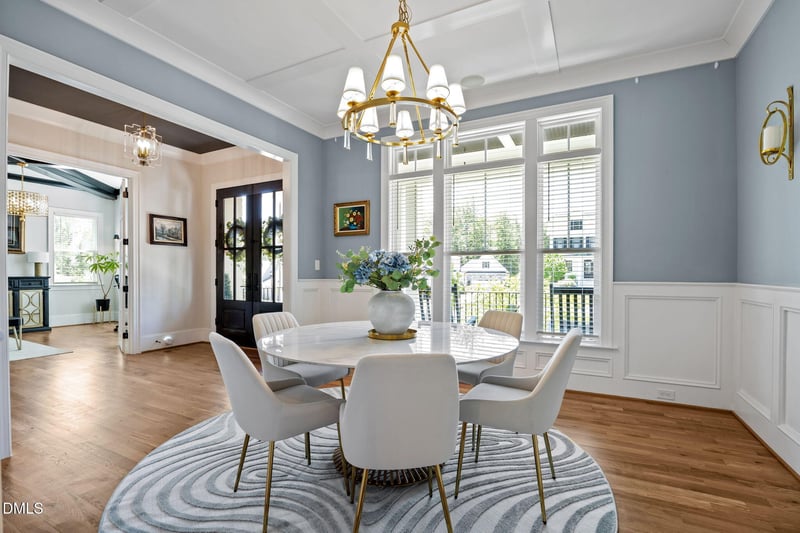 Located on a picturesque landscaped 0.97-acre lot, this home combines custom design with effortless livability. A welcoming front porch opens to a grand foyer showcasing custom trim, soaring ceilings, and beautiful hardwoods throughout all three levels. The main floor offers a formal dining room, dedicated study, a full guest suite, while the chef's kitchen is built to entertain with a large quartz island, butler's pantry, breakfast nook, wall oven, and top-tier appliances. The spacious living room features custom built-ins, a gas fireplace, and sliding doors that seamlessly connect to the screened porch.