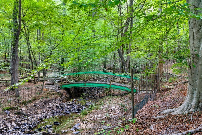 Listing details for 2227 Graystone Ln, Chapel Hill, NC 27514 : Private contemporary retreat on 3.39 wooded acres ideally located between Chapel Hill, Durham, and Hillsborough. One of a kind outdoor paradise with lushly landscaped gardens, year round brook with romantic bridge, and a custom Gazebo designed for entertaining with dining space, prep area, and hot tub. The architecturally distinctive home features soaring vaulted ceilings, walls of windows that frame serene woodland views, and adaptable living spaces designed for comfort, including a casita with separate entrance. Highlights include: • Light-filled living areas with soaring 10-15 ft ceilings • Newly updated kitchen • Expansive primary bedroom with large walk-through wardrobe and separate space for gym, office or nursery • Main level bedroom with adjoining full bathroom; perfect for multi-generational needs • New guest casita with kitchenette and private entrance • Multiple flex spaces for office, studio, or gym/yoga • Sunroom and separate screened porch overlooking beautiful gardens with specimen plantings and total privacy Outside, winding garden paths lead to a picturesque bridge crossing a year-round creek, while the huge screened gazebo creates an unforgettable setting for gatherings and quiet evenings alike. Property includes a 2 car garage, covered carport, plus a fully equipped workshop perfect for projects and hobbies. Ideal central location; a private country setting just minutes from Chapel Hill, Durham, Hillsborough, UNC and Duke, this rare property offers the perfect balance of privacy, nature, and convenience.