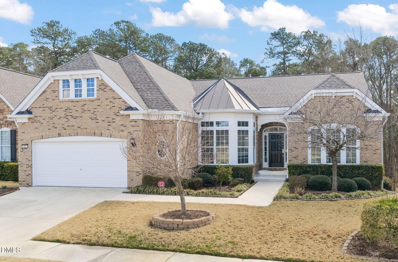 Listing details for 223 Beckingham Loop, Cary, NC 27519 : Ideally located in Cary's premier 55+ active adult community featuring park and wooded views, all within walking distance to the state-of-the-art clubhouse, pickle ball and tennis courts. Elegant brick facade opens to a well-designed transitional floor plan. Gourmet kitchen with center island, Zodiac counters, breakfast bar, tons of cabinetry, and a gorgeous breakfast room with 12 ft tray ceiling. The separate laundry room and mud room area are conveniently located right off the kitchen. A home office or library with updated lighting and glass French doors overlooks the park. The living room with gas FP flows seamlessly to the dining room and stunning sunroom with high quality sliding doors. Enjoy the sunroom's exceptional wooded views from the floor to ceiling casement windows. There is even a grilling deck with easy maintenance-free trex flooring. The primary bedroom with tray ceiling showcases a large bath with soaking tub, walk-in shower and dual vanity. There are two guest rooms with a Jack & Jill plus a powder room for guests. But wait...there's more! Downstairs offers a media room, bonus room, game room with wet bar and mini-fridge, and another bedroom and full bath. Step out onto the covered patio to the fenced yard with forever green turf. Ample storage in unf. area of lower level. Brand new neutral paint throughout, gleaming hardwood floors, irrigation system, security system, large garage with epoxied floor, roof replaced 2021, This is truly move-in ready ....make an appointment to see it today!