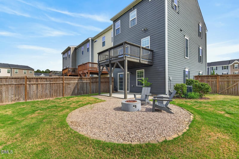 Upstairs, the generous primary suite features a walk-in closet and an ensuite bath with upgraded tile shower surround and dual vanities. Two additional bedrooms are bright and spacious, sharing a well-appointed hall bathroom. The lower level offers versatile space that could be used as a home office, gym, media room or secondary living space. This flex space has a large storage closet, garage access, and opens directly to a patio and an expansive, fully fenced backyard boasting approximately 220 feet of fencing and an inviting firepit--ideal for outdoor gatherings or quiet evenings. Community amenities include a dog park, 5-hole frisbee golf course, open green spaces, two playground structures, grass volleyball courts, and picnic areas with charcoal grills. This move-in-ready home is an exceptional opportunity you don't want to miss!