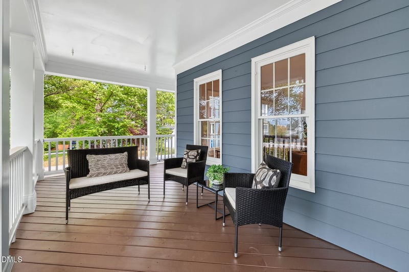 Listing details for 225 Rosenberry Hills Dr, Cary, NC 27513 : Perched at the top of Rosenberry Hills Drive, this charming Southern home makes an immediate impression with its gracious wraparound front porch and elevated 0.32-acre corner cul-de-sac setting. Out back, the home continues to impress with an expansive paver patio, retaining walls for seating, integrated cafe lighting, a fire pit, and a flat, usable yard with room to gather, play, and unwind. Stepping inside, a dramatic two-story foyer and staircase create a warm first impression, with a private study behind glass French doors, formal living and dining rooms, and a natural flow into the kitchen, breakfast nook, and expansive family room. The home is filled with incredible natural light, and its north-facing orientation gives the interior a soft, balanced glow that shifts beautifully throughout the day. Freshly refinished hardwoods, new carpet, updated lighting, and thoughtful recent improvements throughout give the home a polished, move-in ready feel. Upstairs, all bedrooms and the laundry room are located on the second floor, including the primary suite and three additional bedrooms. The refreshed primary bath features a new shower, updated tile and glass, quartz counters, refinished cabinetry, and updated fixtures. The shared hall bath has also been refreshed with new flooring, quartz counters, refinished cabinetry, and updated fixtures. The third floor puts the fun in functionality of vaulted space complete with hardwood floors, a full bath, massive closet, and a sleeping nook with built-in shelving. This space is flexible enough to live as a fifth bedroom, guest retreat, teen suite, media/game room. Meaningful system updates add buyer confidence, including the roof and water heater replaced in 2019, both HVAC units replaced in 2021, and the crawlspace encapsulated in 2024. Set in Cary's Silverlake, residents enjoy a neighborhood lake for fishing, canoeing, kayaking, and paddleboarding, along with convenient access to Cary greenways, shopping, dining, and everyday conveniences.