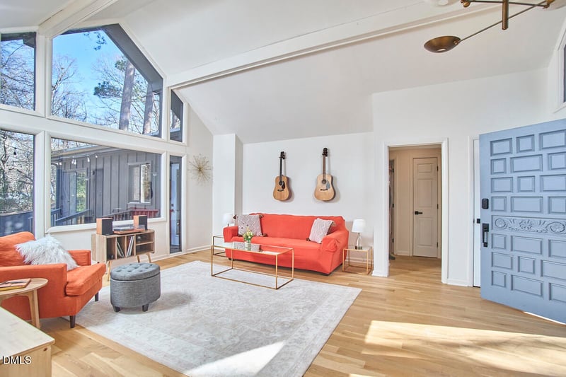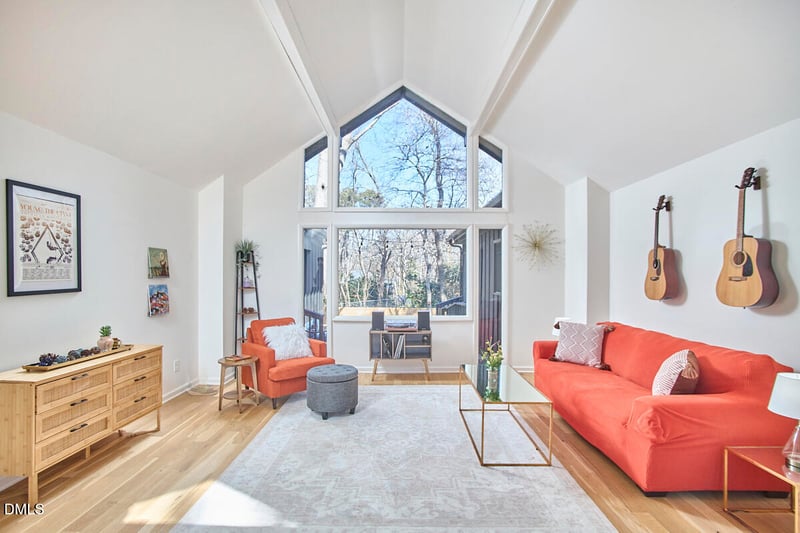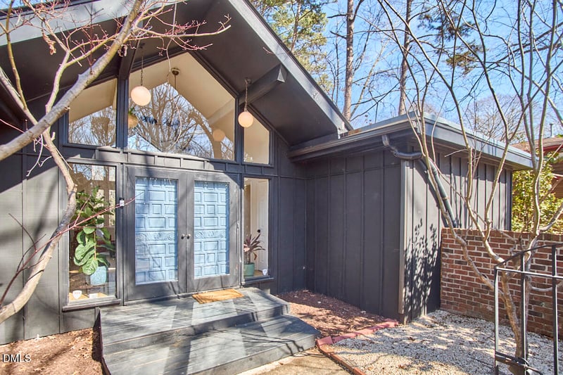 Listing details for 225 Woods Ream Dr, Raleigh, NC 27615 : Live the dream on Woods Ream! This recently renovated modernist retreat lives far larger than its elegant-yet-humble exterior might suggest, blending architectural character with effortless livability. Vaulted ceilings and dramatic floor-to-ceiling windows in the entry foyer create an unforgettable first impression, flooding the home with natural light and framing the surrounding greenery like a work of art. With a u-shaped design wrapped around a private courtyard, the layout offers a seamless indoor-outdoor lifestyle- perfect for intimate mornings with coffee, evening gatherings under the stars, or private moments of quiet retreat. Clean lines, thoughtful updates, and curated finishes enhance the home's original design by infusing it with modern elegance. 5 minutes from the shopping, dining, and energy of North Hills and 6 minutes from the trails and serenity of Shelley Lake, the location is as dreamy as the home itself!