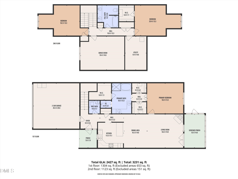 Upstairs you'll find two additional bedrooms, a full bathroom, a large bonus room, and a generous walk-in storage closet.