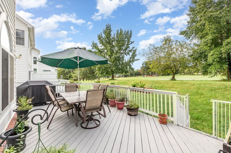 Listing details for 2306 Carriage Oaks Dr, Raleigh, NC 27614 : Welcome to an exceptional luxury townhome enviably positioned on the first fairway of TPC Wakefield, offering sweeping golf course views and an elevated lifestyle in one of the area's most desirable communities. This beautifully maintained home features classic finishes, a refreshed kitchen with elegant quartz countertops and stainless appliances, and abundant space for both everyday living and entertaining. Refinished hardwoods, tall ceilings and generous moldings add warmth and charm, and the feel of a single-family home. Enjoy the versatility of dual dining areas - ideal for formal gatherings or casual meals, a spacious family room along with formal living area, as well as a main-level flex room that can serve as a home office, library, or guest space. The stately primary suite serves as a private retreat, complete with a sitting area, updated bath, custom closets, and serene views overlooking the course. A secondary staircase leads to an expansive bonus room or optional bedroom with its own ensuite bath - perfect for guests or multi-generational living. Two additional bedrooms share an adjoining bath and feature walk-in closets, providing plenty of room for family or guests. Step outside to an expansive deck that captures picturesque fairway views, creating the perfect setting for relaxing evenings or hosting friends. Additional highlights include a brand-new roof, one-year-new hot water heater, upgraded electrical panel, transferrable home warranty, and the rare potential to assume a low-interest VA loan for qualified buyers. Residents of CC at Wakefield Plantation enjoy access to outstanding community amenities with available memberships, including reciprocity with seventeen premier O'Connell Golf properties across four states, as well as pool and tennis privileges, dining, fitness and social events. Learn more at https://www.ccwakefieldplantation.com/. Ideally located near top-rated schools, the Kerr Family YMCA, abundant shopping and dining, Research Triangle Park and RDU Airport, this home offers both luxury and convenience in equal measure. Experience golf course living at its finest - schedule your private tour today.