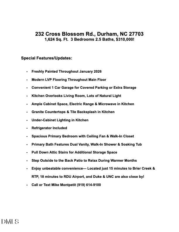 Description of 232 Cross Blossom Rd, Durham, NC 27703