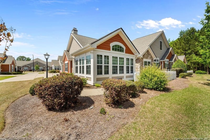 Listing details for 232 Nandina Ct, Fayetteville, NC 28311 : Looking to turn in your lawn mower and just sip drinks by the pool? How does no yard maintenance sound? Maybe 232 Nandina Court is the perfect place for you. This beautiful home features two bedrooms, two bathrooms, a large sunroom, open family/dining and kitchen area perfect for entertaining. A flex room that would make a wonderful formal dining or a study, currently a fabulous craft room. Spacious bedroom two is next to a large full bath with a tub/shower combination. The living area features vaulted ceilings, gas log fireplace, open dining area, and lovely LVP floors. The sunroom can be closed off and used for multiple uses, with tons of natural light pouring in from wall to wall windows. The owner's suite and bath includes two closest and a linen closet for plenty of storage, and a large walk in shower, also double sink vanity. The kitchen boasts lovely granite counters, SS appliances with no fingerprint surfaces, tons of cabinets and a pantry. When you head towards the garage, there is additional storage and a large laundry room with deep sink, and yes, more storage. The garage features pull down for access to yet more storage. The space is incredible, it is simplified living without giving up room. Walking track, Clubhouse, exercise room and pool amenties, along with garbage service and exterior maintenance are included at the Cottages at North Ramsey.