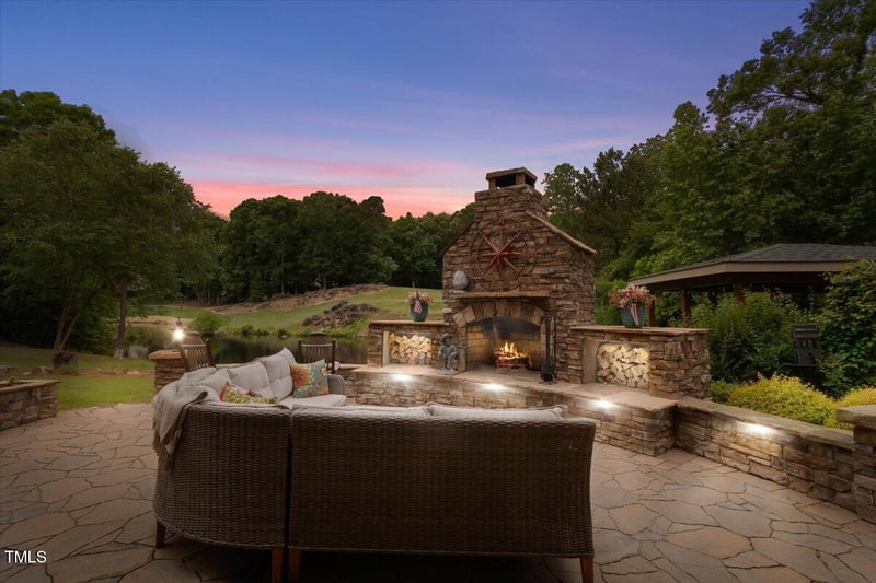 Listing details for 233 Hein Dr, Clayton, NC 27527 : Wake up to water views, unwind with sunset golf course vistas, and live where every day feels like a retreat. Set behind the signature 14th hole of Neuse Golf Club, this pond-front residence in Glen Laurel offers a rare blend of space, flexibility, and scenic beauty. With over 4,250 square feet, this custom-built home is designed for both comfortable everyday living and memorable entertaining. A dramatic 2-story living rm. sets the tone with soaring ceilings, floor-to-ceiling UV-reducing windows, and a striking herringbone stone gas fireplace--creating a light-filled, inviting centerpiece for the home. The open flow connects seamlessly to the kitchen and outdoor living spaces. The chef's kitchen features gas cooking, abundant cabinetry, expansive prep space, and a combined walk-in pantry/laundry area designed for convenience and efficiency. With 5 bedrooms and 3.5 baths, this home adapts to your needs--whether hosting guests, working from home, or accommodating multigenerational living. Upper Level-2 bedrooms, full bath, and a versatile bonus space ideal for a home office, gym, or media room, plus walk-in storage. Lower Level-Fully finished with private entrance, second full kitchen, two additional bedrooms or offices, full bath, and generous storage, perfect for extended stays or independent living. Enjoy peaceful mornings on the screened porch overlooking the pond and fairway, or relax on the renovated upper deck. The backyard is designed perfectly for prom photos! & for gathering and unwinding with a Stone paver patio, Custom wood-burning fireplace, Covered, electrified pergola by the water, ideal for dining, entertaining, or quiet evenings outdoors. Plus a 2-car garage with epoxy floors, Extended driveway with ample parking, lots of storage throughout, New roof for added peace of mind. Tucked within Glen Laurel, this home offers a unique opportunity to enjoy golf course living with tranquil water views, flexible living spaces, and room to grow--all in one exceptional setting.