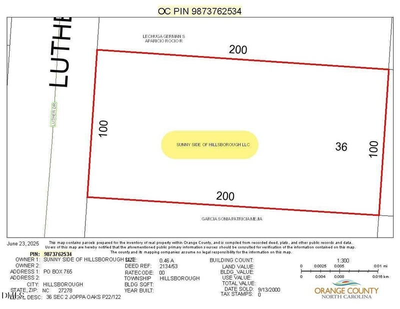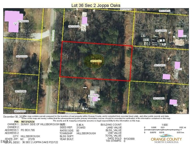 Listing details for 2332 Luther Dr, Hillsborough, NC 27278 : 0.46 acre wooded lot in Joppa Oaks. Potential uses might include investment, timber, private workshop or private car, boat, or RV storage. Contact inspections/planning dept for confirmation on intended use. Will likely not qualify as a home site due to no-perc soils. 3 other vacant lots in Joppa Oaks are also available as a package if desired. The listed address is a formerly-assigned address - this parcel currently has no assigned street address.
